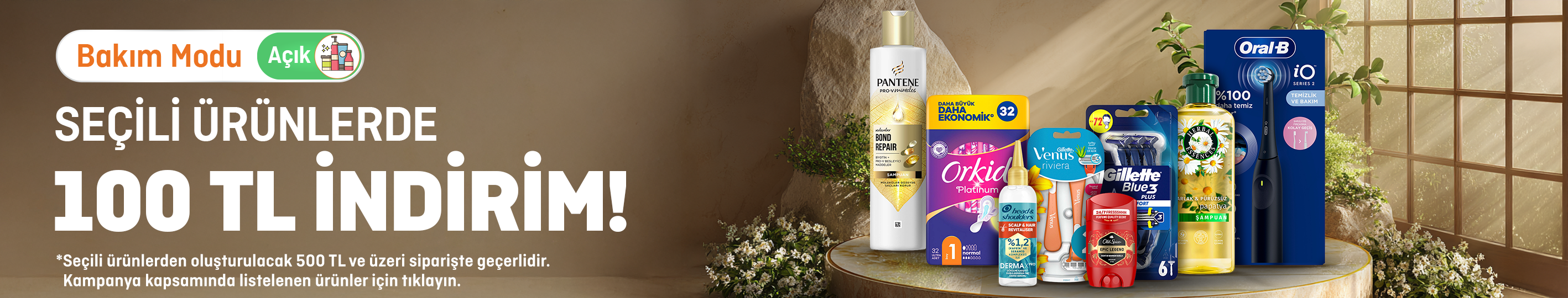 - Kampanya seçili P&G bakım ürünlerinden oluşturulacak 500 TL ve üzeri siparişte 100 TL indirim sağlar.