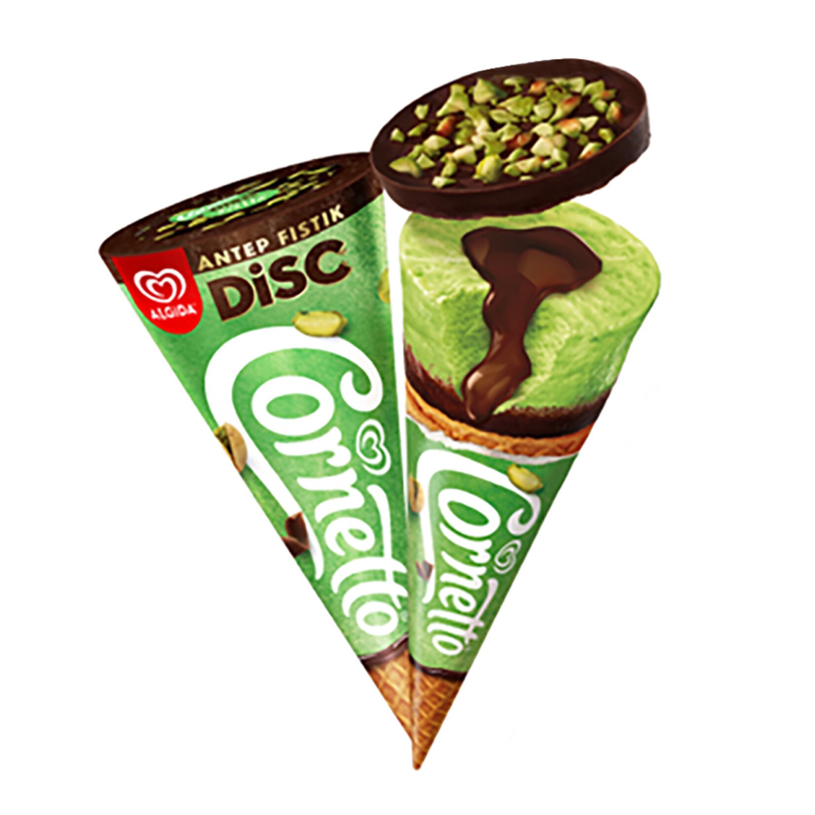 Cornetto Choco Disc Fıstık Parçası Çikolata, her mevsim dondurmanın tadını doyasıya çıkarmak isteyenler için... Tadına doyulmaz fıstıkla kaplı çikolatalı diskinin altındaki Antep fıstıklı dondurma ve çikolata sosu ile büyüleyici bir külah dondurmadır. Çikolatalı finali ile küçük büyük bu lezzete hayran olacaksınız!