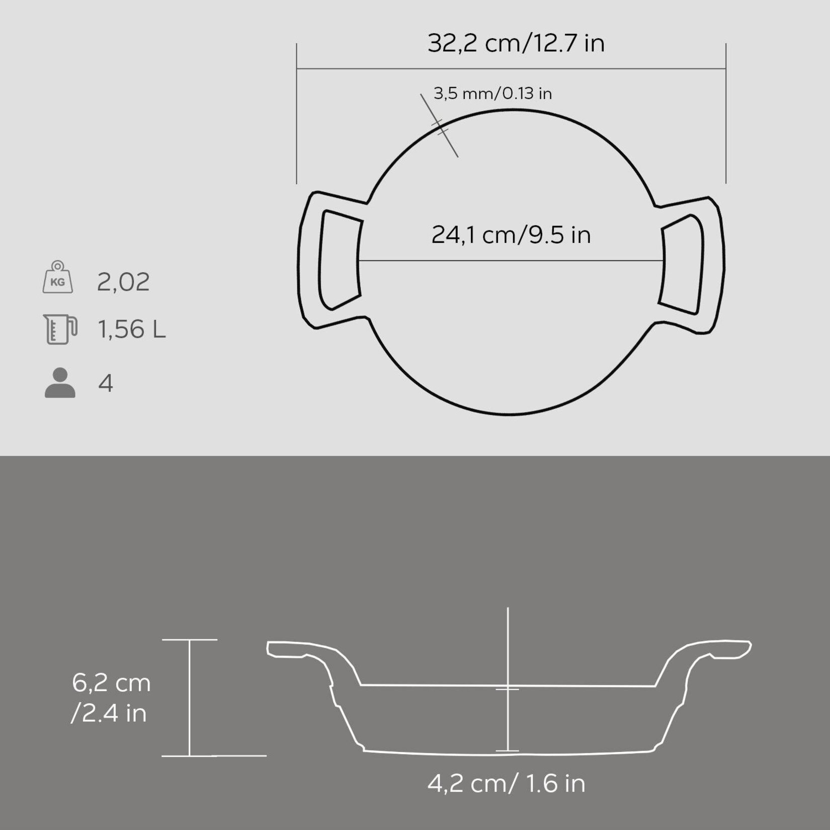 İç (cm): En = 24.1 cm, Boy = 24.1 cm, Derinlik = 4.2 cm
