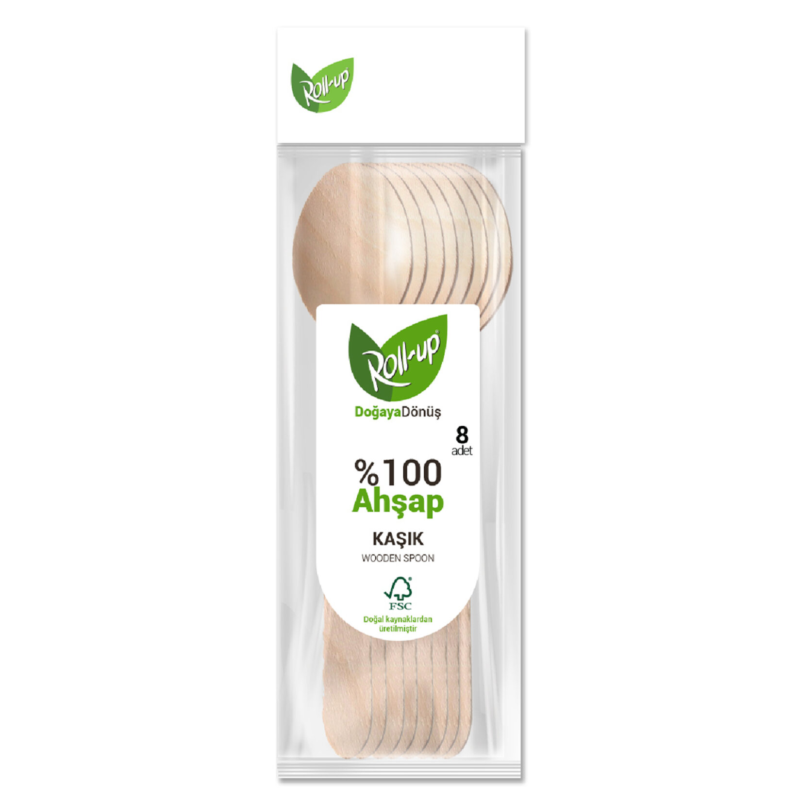 Sağlıklı dokusu ve sağlam yapısı sayesinde kahvaltı ve yemeklere eşlik edebilen Roll-up doğaya dönüş ahşap kaşıklar, kullan at şeklinde veya ılık suda yıkanıp temizlenerek tekrar kullanılabiliyor. Reçel, çikolata, sos gibi akışkan gıdaların kolay yenilebilmesi veya çay karıştırmak için yardımcı olan ahşap kaşıklar daha sonra yine geri dönüşüme kazandırılabiliyor.