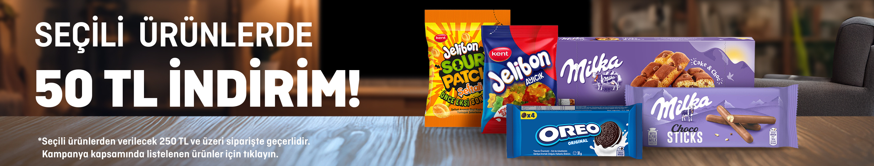 - Kampanya seçili Mondelez ürünlerinden oluşturulacak 250 TL ve üzeri siparişte 50 TL indirim fırsatı sağlar.