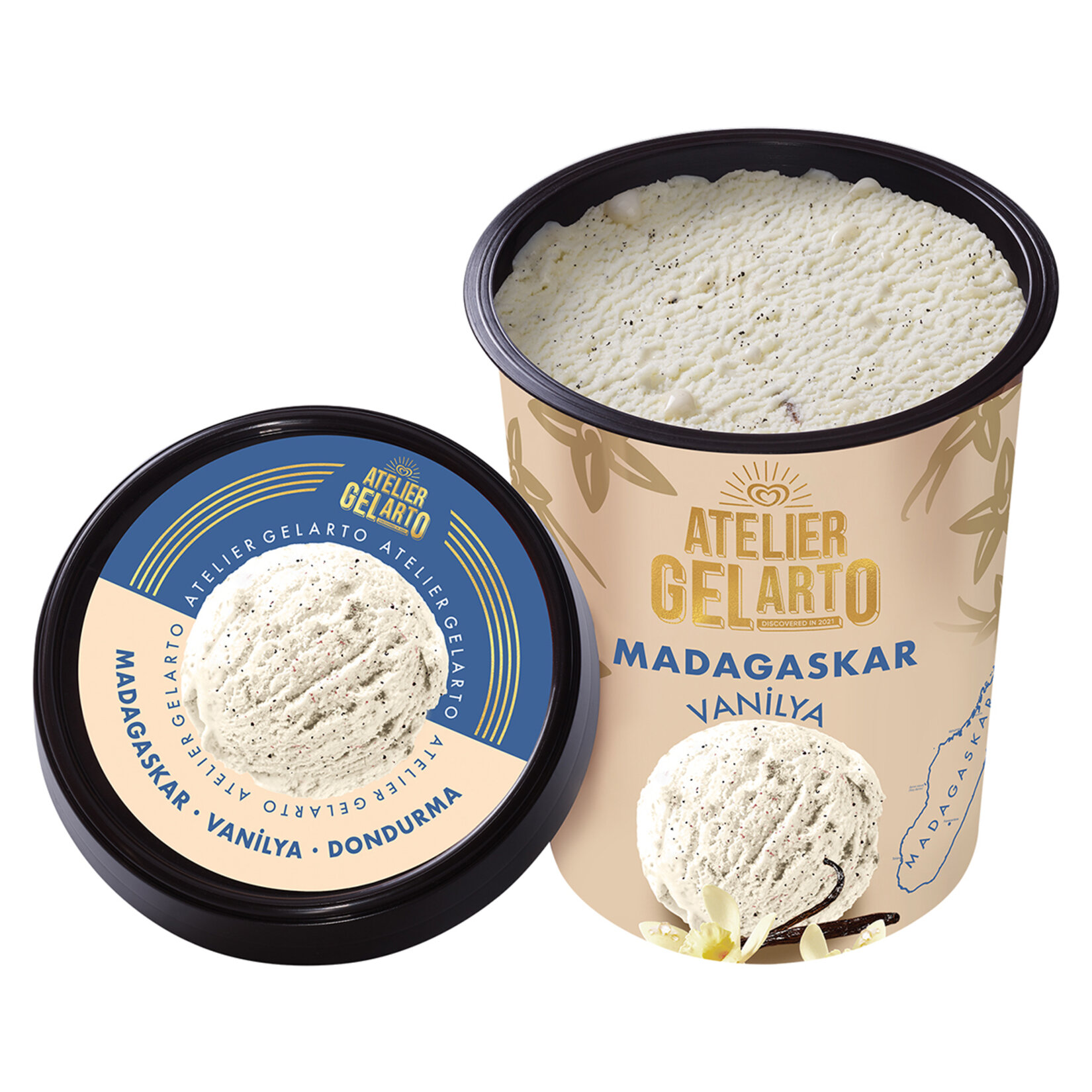Atelier Gelarto, keşfetmeyi sevenleri özel bir yolculuğa çıkarıyor. Madagaskar’da yetişen vanilya podlarından gelen muhteşem lezzeti dondurmayla buluşturan Atelier Gelarto Madagaskar ile her kaşıkta dünyaya açılan bir lezzet yolculuğuna çıkacaksınız. En seçkin ve zengin içeriklerle sizin için özel olarak hazırlanan Atelier Gelarto Madagaskar, sütün yoğun lezzetini ve vanilya podlarının benzersiz tadını bir araya getirerek size unutulmaz bir deneyim yaşatacak.