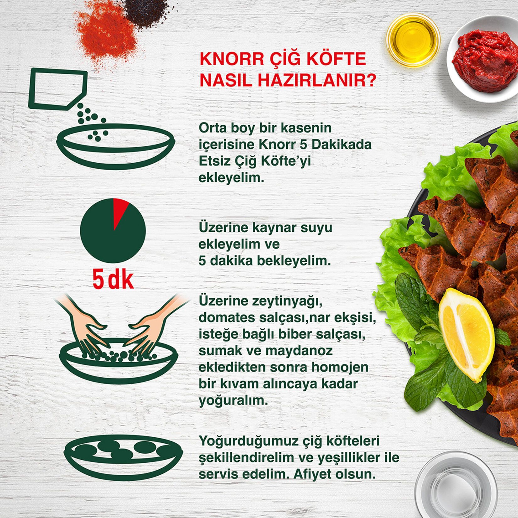 40000000070300/40000000070304Anasayfa Temel Gıda Baharat Knorr 5 Dakikada Etsiz Çiğ Köfte Seti 120 G Knorr 5 Dakikada Etsiz Çiğ Köfte Seti 120 G Knorr Ürün ÖzellikleriBesin DeğerleriÜrün Bilgileri
