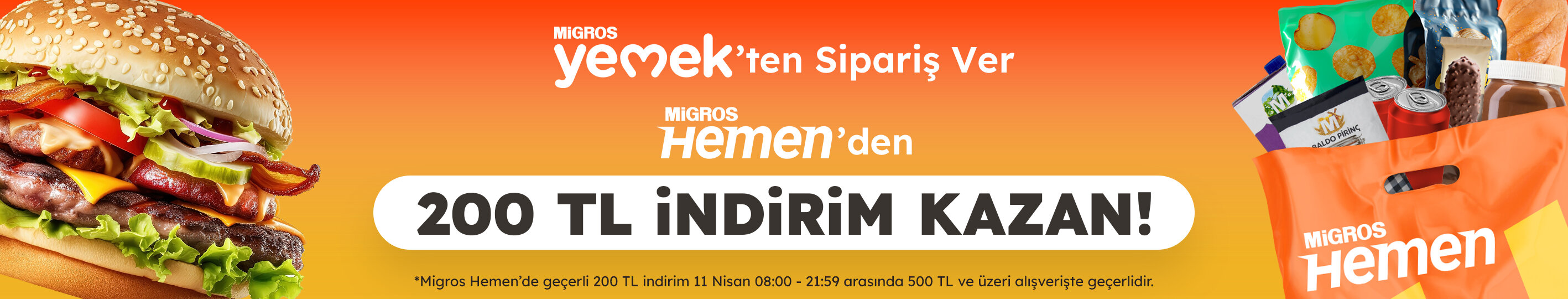 • Migros Hemen'de geçerli 200 TL indirim 11 Nisan 2025 tarihinde geçerlidir