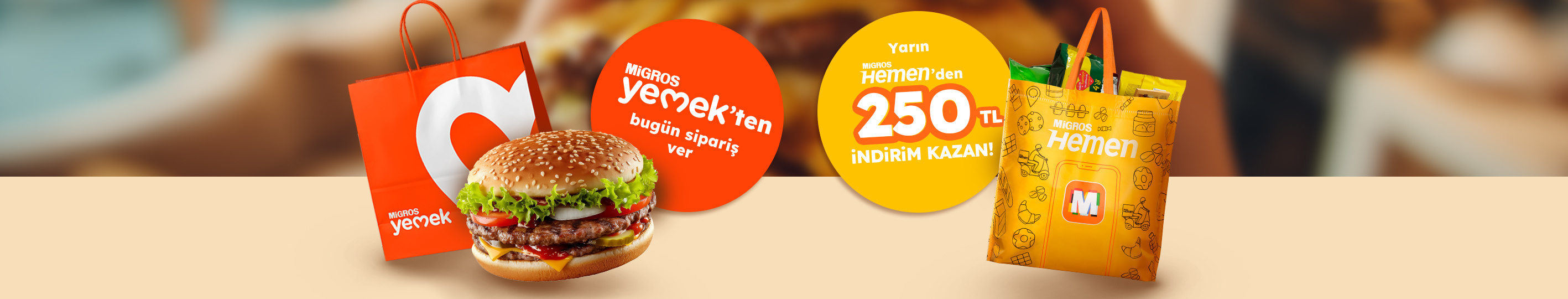 - Kampanya kapsamında 2 Nisan 2026 tarihinde verilecek Migros Yemek siparişi ile 3 Nisan 2026 tarihinde Migros Hemen'den verilecek 600 TL ve üzeri siparişte geçerli 250 TL indirim çeki hak edişi gerçekleşir.