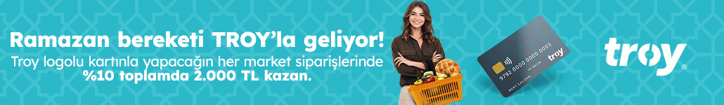 • Kampanya, yalnızca kampanyaya katılan banka ve elektronik para kuruluşları aracılığıyla edinilen TROY logolu bireysel kartlarla sınırlıdır. Aktif Yatırım Bankası A.Ş, Alternatifbank A.Ş., Hayat Finans Katılım Bankası A.Ş., Moka Ödeme Hizmetleri ve Elektronik Para A.Ş., Moneypay Ödeme ve Elektronik Para Hizmetleri A.Ş., Odeabank A.Ş., Payporter Ödeme Hizmetleri ve Elektronik Para A.Ş., T.O.M. Katılım Bankası A.Ş., TT Ödeme ve Elektronik Para Hizmetleri A.Ş., Vodafone Elektronik Para ve Ödeme Hizmetleri A.Ş. kampanya katılımcısı değildir.