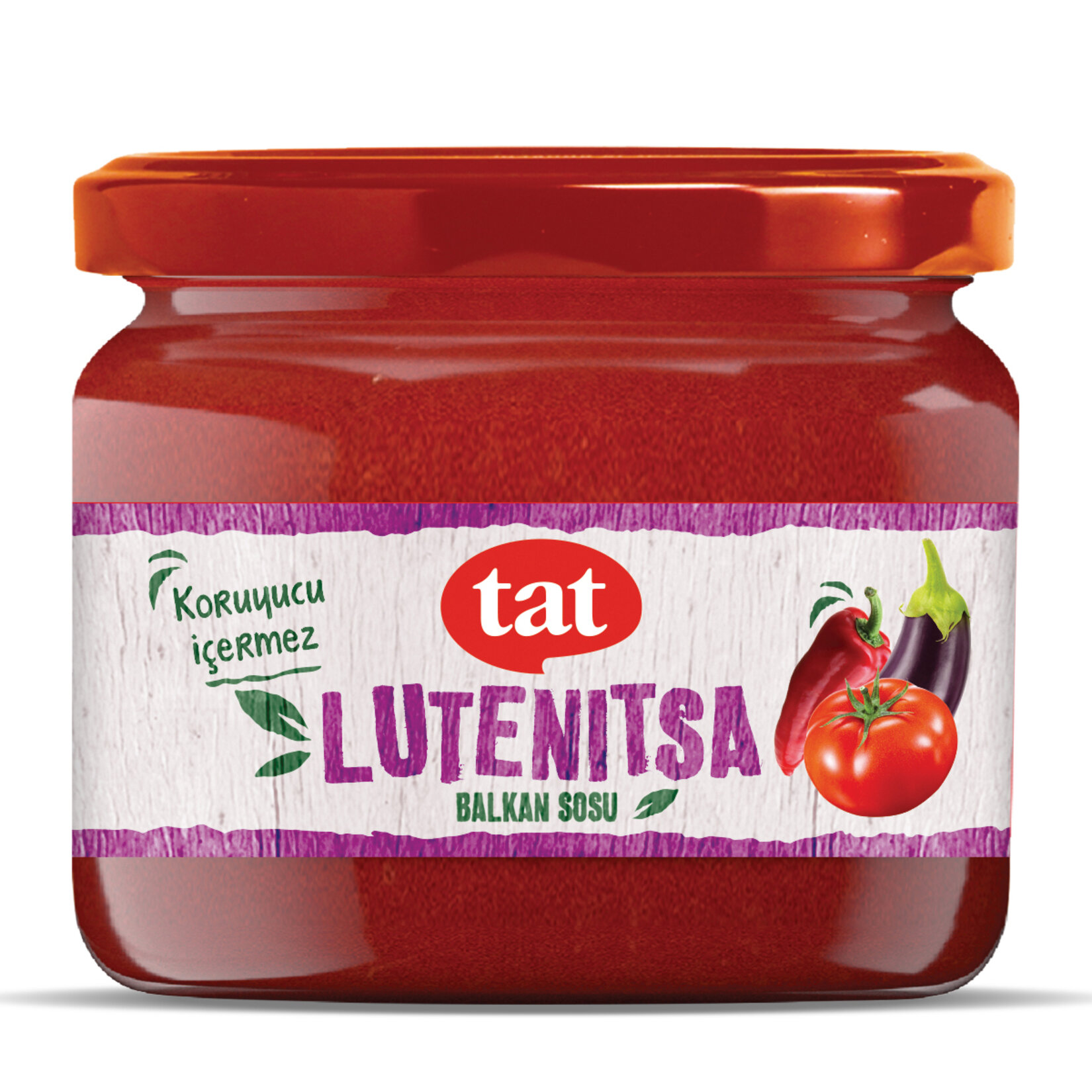Tat Lutenitsa Sos, közlenmiş kırmızı biber, közlenmiş patlıcan, sarımsak ve baharatların muhteşem birleşimiyle sofralarınızın vazgeçilmezi olacak. İster kahvaltıda, ister meze olarak veya ekmek üzerine sürülerek pratik bir lezzet olarak tüketilebilir. Katkı maddesi içermememektedir. Cam kavanozda içerisinde satışa sunulmuştur. Kapağı açıldıktan sonra buzdolabında saklanması ve 5 gün içinde tüketilmesi tavsiye edilmektedir. Güneş ışığından koruyunuz. Serin ve rutubetsiz yerde saklayınız.