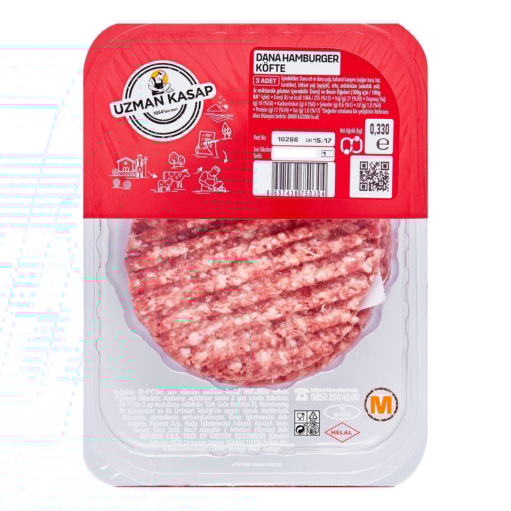 Uzman Kasap Hamburger Köfte, evde leziz hamburgerler hazırlamak için tercih edilebilir. Migros'un deneyimli kasaplarınca hazırlanıp paketlenir ve sofralarınıza sunulur.