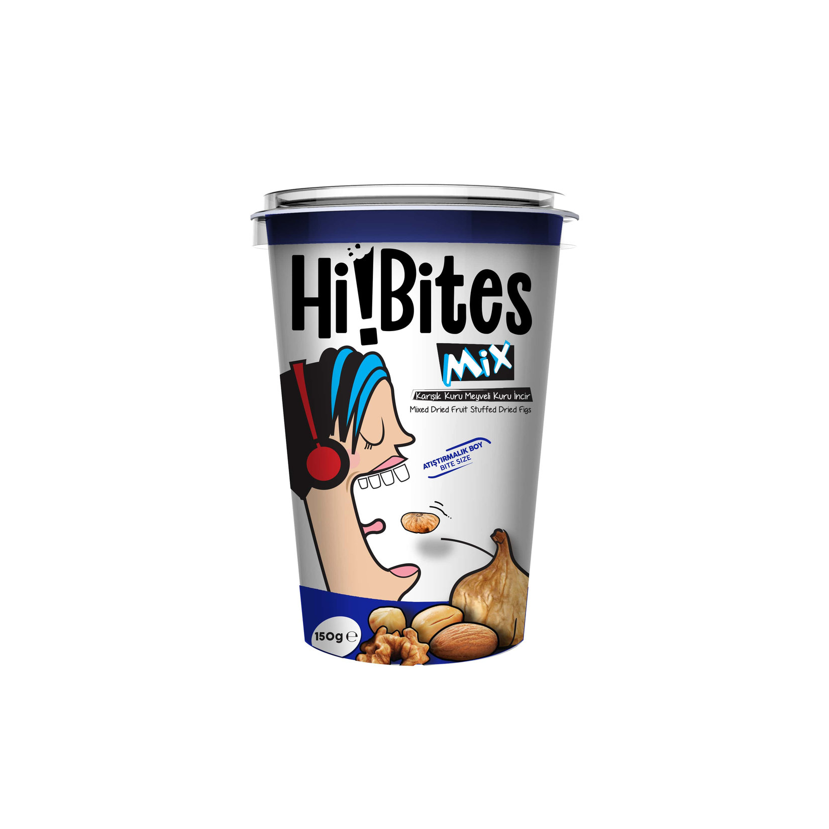 Hi!Bites Karışık Kuruyemişli Kuru İncir tüm Hi!Bites çeşitlerinin bir araya getirilmesi ile tamamen doğal, hiçbir katkı maddesi kullanılmadan üretilmiştir. Ceviz, kavrulmuş fındık, yerfıstığı ve badem atıştırmalık boy kuru incirler ile özenle bir araya getirilmiştir. Her zaman tazeliğini koruması ve bozulmasını engellemek için gıdaya uygun oksijen emici kullanılarak ambalajlanmıştır.