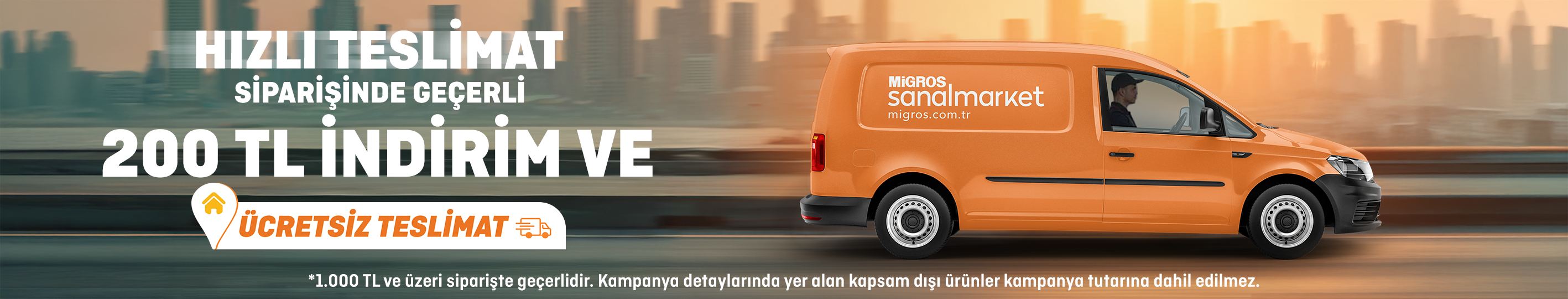 - Kampanya 17 - 31 Kasım 2025 tarihleri arasında geçerli olup, Migros Sanal Market'ten verilecek Hızlı Teslimat siparişlerinde 200 TL indirim ve ücretsiz teslimat fırsatından faydalanılabilecektir.