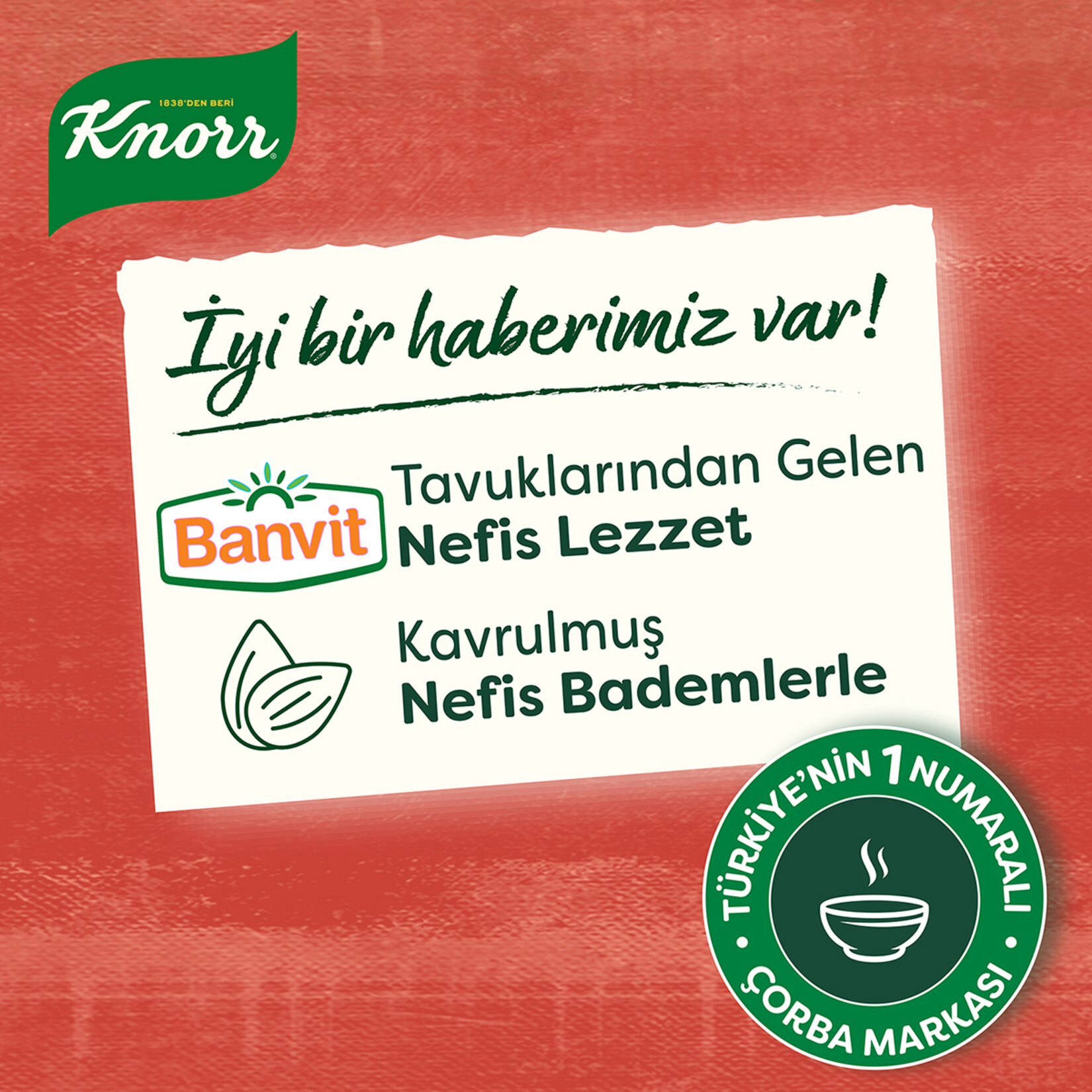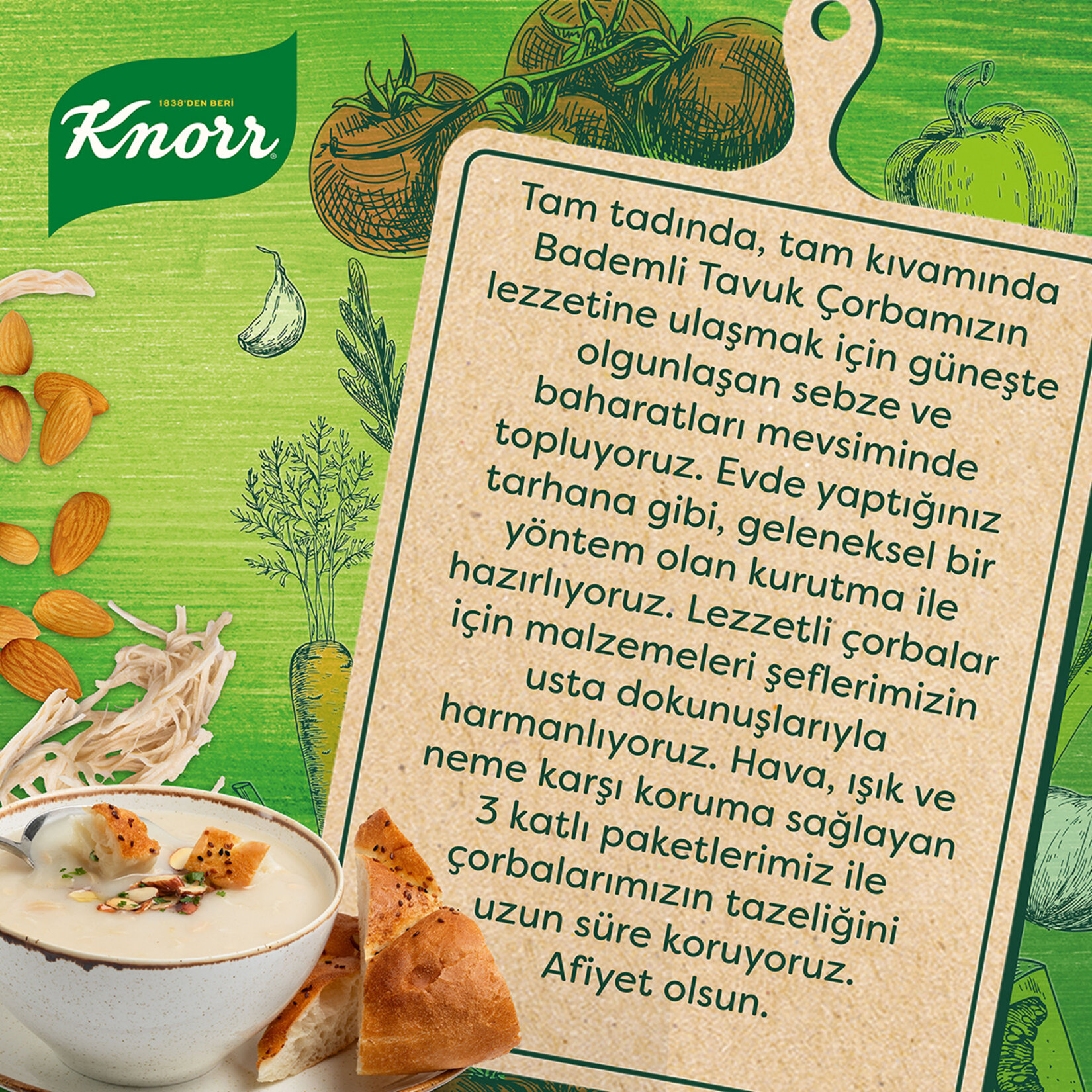 20000000000125/20000000001103Anasayfa Meze, Hazır Yemek, Donuk Pratik Yemek Knorr Bademli Tavuk Çorbası 75 G Knorr Bademli Tavuk Çorbası 75 G Knorr Ürün VideosuÜrün ÖzellikleriÜrün AçıklamasıBesin DeğerleriÜrün Bilgileriİade Koşulları