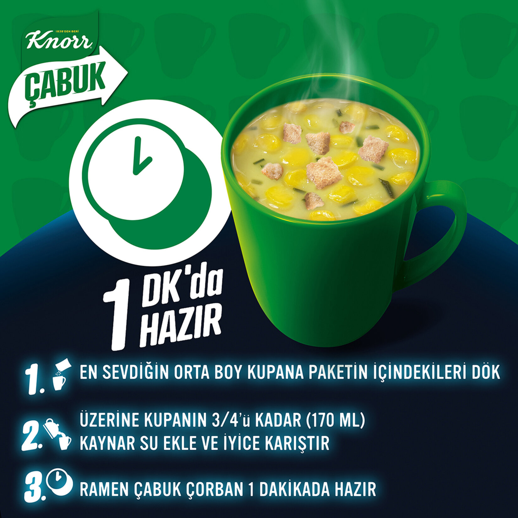 20000000000125/20000000001103Anasayfa Meze, Hazır Yemek, Donuk Pratik Yemek Knorr Çabuk Çorba Crazy Corn 18 G Knorr Çabuk Çorba Crazy Corn 18 G Knorr Ürün ÖzellikleriBesin DeğerleriÜrün Bilgileriİade Koşulları