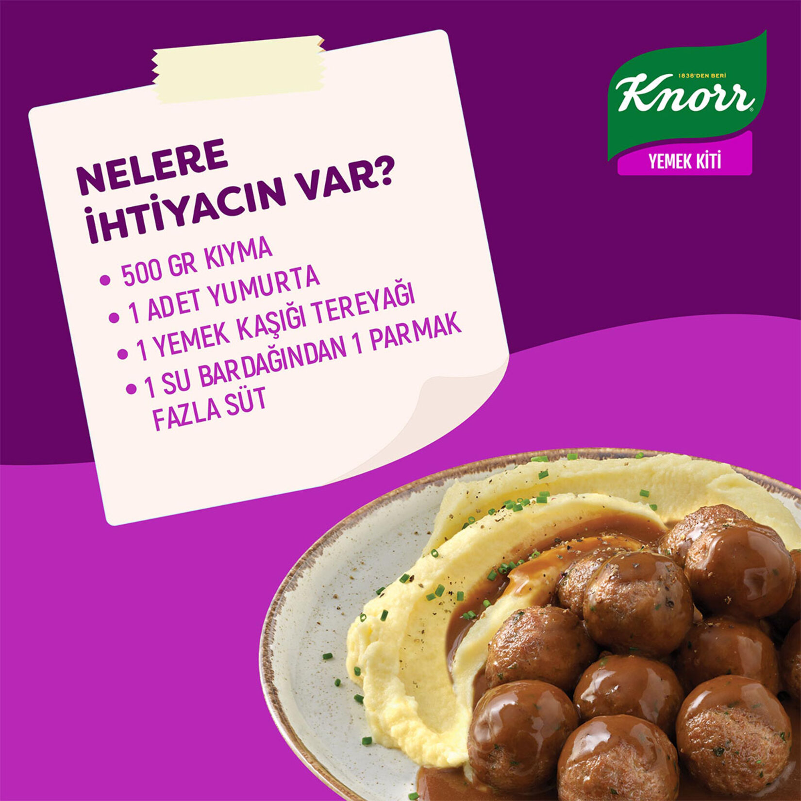 20000000000005/20000000000119/20000000001079/20000000010191Anasayfa Temel Gıda Tuz, Baharat, Harç Harç Yemek Harçları Knorr Yemek Kiti İsveç Usulü Gravy Soslu Köfte 150 G Knorr Yemek Kiti İsveç Usulü Gravy Soslu Köfte 150 G Knorr Ürün VideosuÜrün ÖzellikleriÜrün AçıklamasıBesin DeğerleriÜrün Bilgileriİade Koşulları