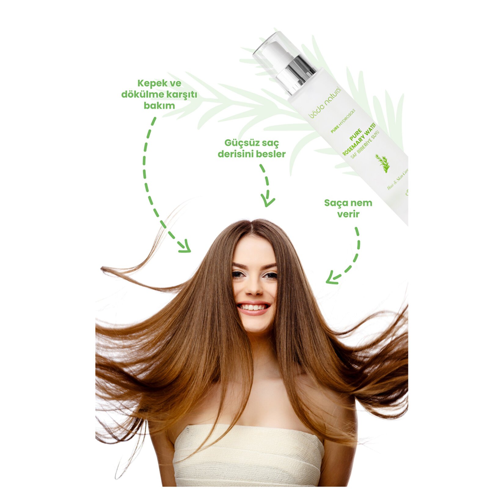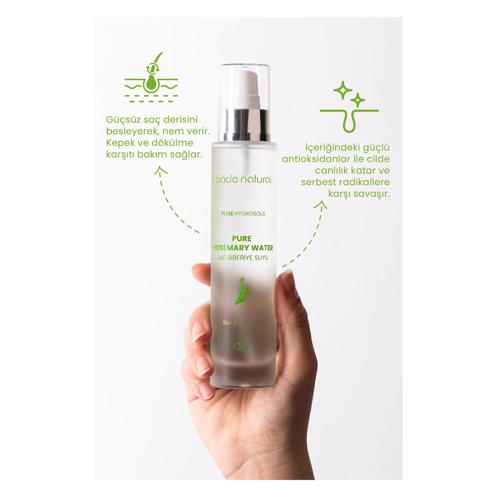 Bade Natural Biberiye Suyu Saç Toniği, %100 saf biberiye hidrosolü içeriği ile saç dökülmesini azaltır, saç derisini nemlendirir, besler, saçları güçlendirir ve saçlara doğal hacim kazandırır. Tüm saç tipleri için uygundur.