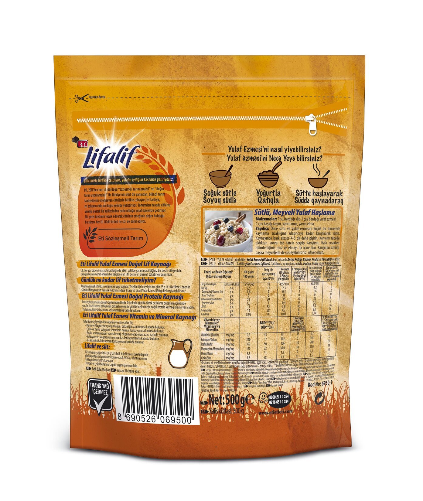 Eti Lifalif Yulaf Ezmesi; yulafın doğallığını, lezzetini ve besleyiciliğini size pratik bir şekilde sunan sağlam bir kahvaltı ve ara öğün alternatifidir.