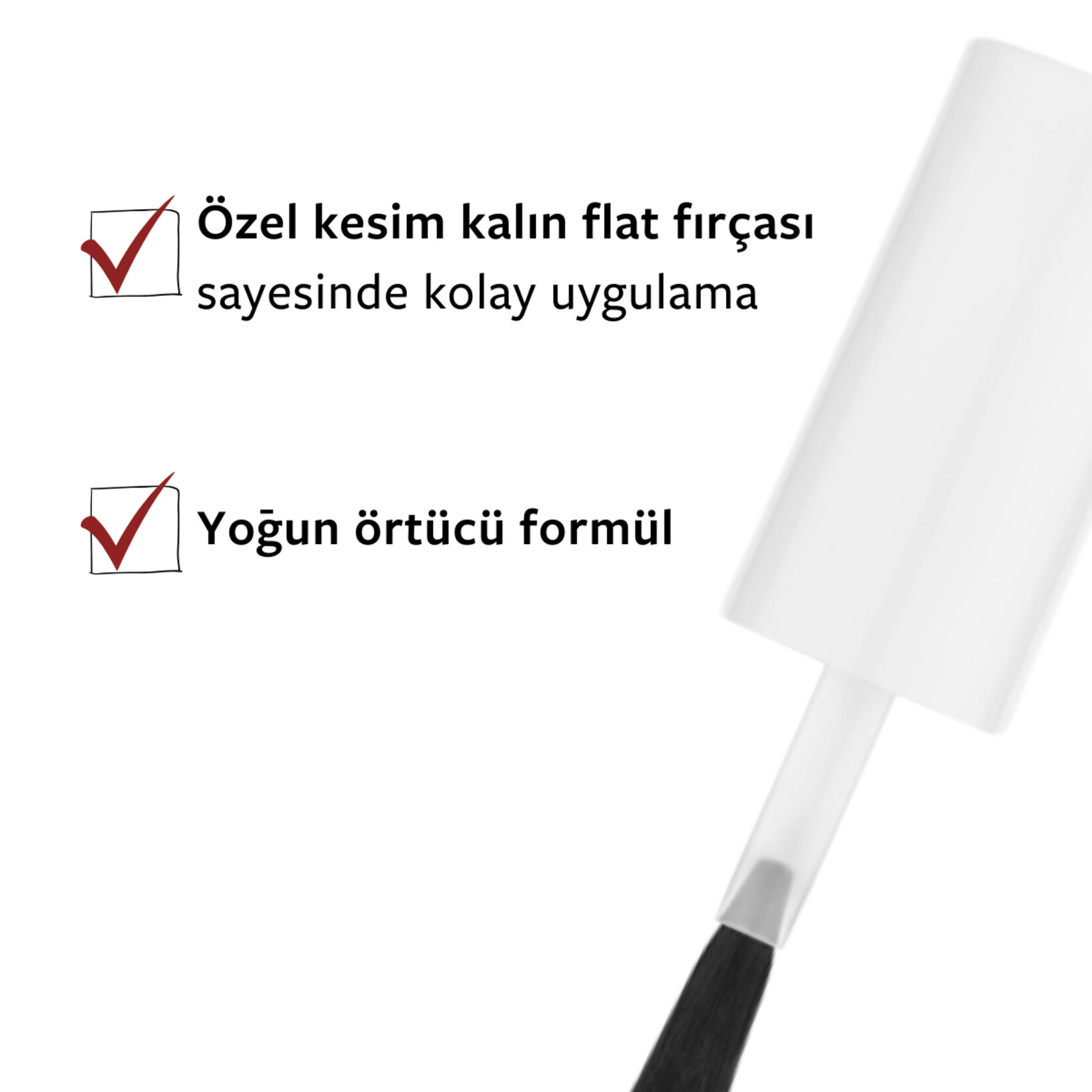 Kullanım: Özel kesim flat fırçasıyla tırnak diplerinden uçlara doğru sürün.