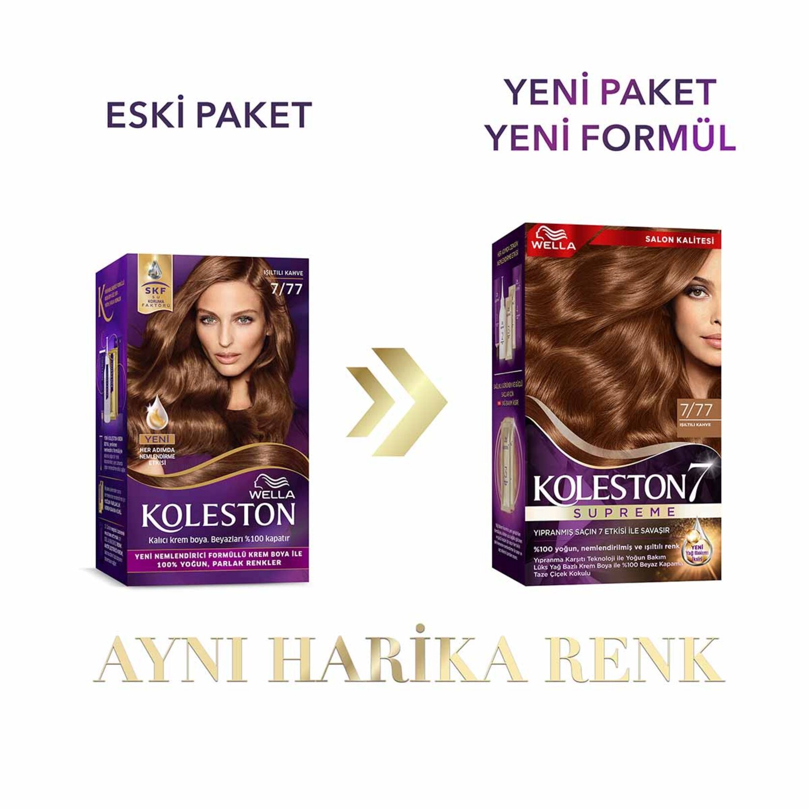 Koleston Supreme Kit ile %100 yoğun,nemlendirilmiş ve suya dayanıklı ışıltılı bir renk elde edin. Yıpranmış saçın 7 etkisiyle savaşın.