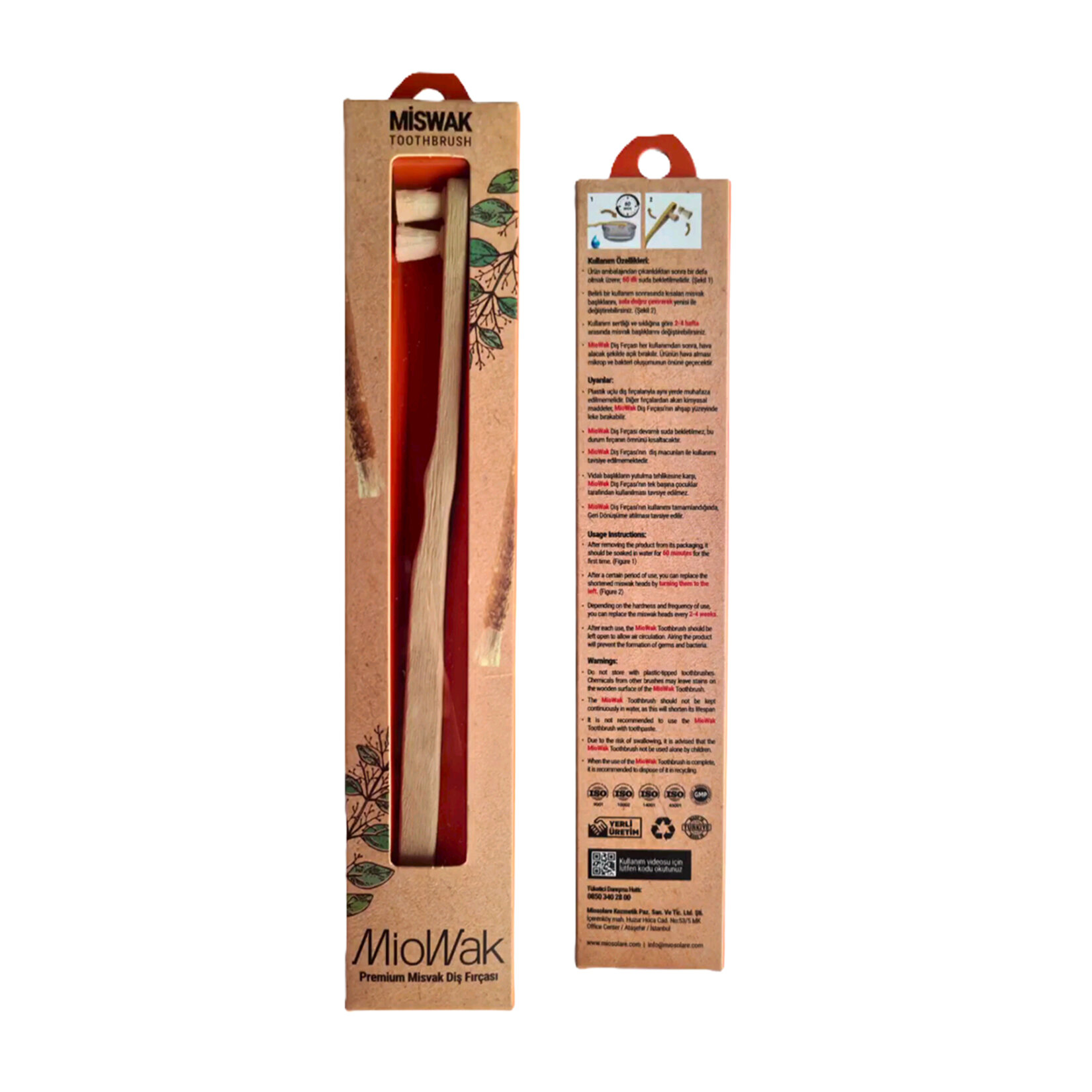 Plastik uçlu diş fırçalarıyla aynı yerde muhafaza edilmemelidir. Diğer fırçalardan akan kimyasal maddeler, MioWak Diş Fırçası’nın ahşap yüzeyinde leke bırakabilir.