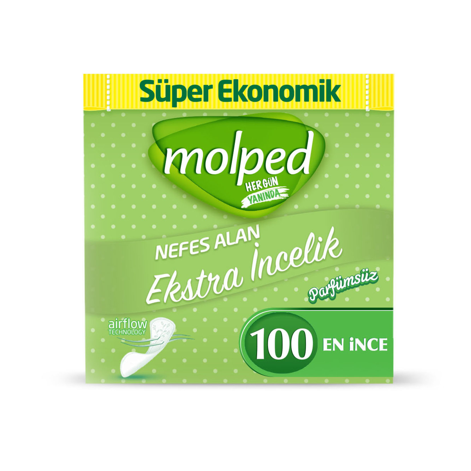 Molped Günlük Ped Ekstra İnce Parfümsüz, incecik ve esnek yapıya sahip olup; günlük ultra ince günlük ped tercih eden kadınlar için idealdir. Hava geçirgen yüzey teknolojisi sayesinde ise 3 kata kadar daha fazla nefes alır. Cilde dost yapısı dermatolojik olarak onaylanmış olup koku kontrol sistemi, oluşabilecek kokuları hapsetmeye yardım eder. Molped Günlük Ped Ekstra İnce Parfümsüz, temiz iç çamaşırı hissi ile gün boyu ferah hissetmenize yardımcı olur.