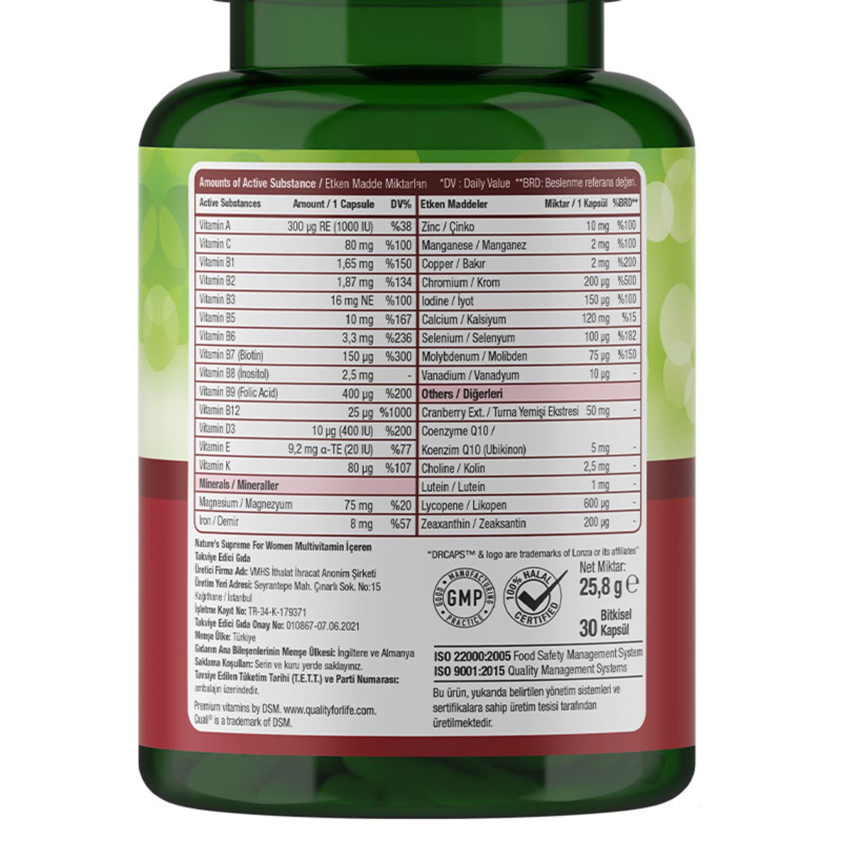 Türkiye'de içeriğinde turna yemişi bulunduran tek multivitamin formülasyonu olan Nature’s Supreme Multivitamin for Women, kadınların kullanımına özel olarak hazırlanmış bir multivitamindir. Nature's Supreme Multivitamin for Women ürünü, Koenzim Q10 ile güçlendirilmiş bir içeriğe sahiptir. Üründe, Quali®-Blends marka hammadde vitamin bileşenleri kullanılmıştır. DSM patentine sahip Quali®-Blends markası dünya çapında vitamin alanında lider firmalar arasında yer almaktadır.
