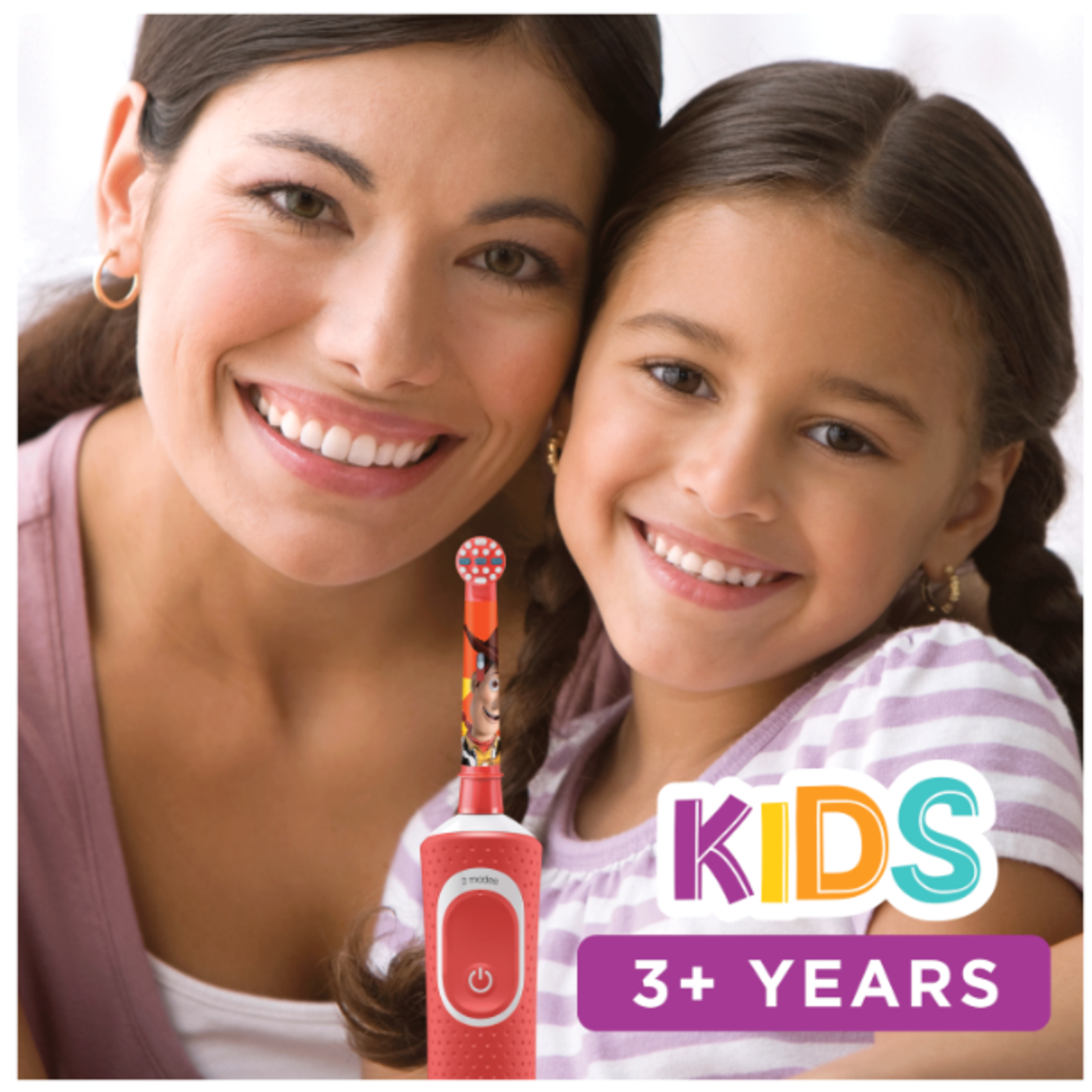 3 yaş üzeri için olan Oral-B Kids elektrikli diş fırçası, çocuklara Disney Pixar Oyuncak Hikâyesi sayesinde eğlenceyi ve diş hekimlerinin tavsiyesi olan bir Oral-B diş fırçasının nazik, etkili temizliğini bir arada sunar. Bu fırça, çocuklara uygun eşsiz hassas modu sayesinde çocukların dişlerini nazikçe temizler. Sıradan manuel diş fırçasına göre daha fazla plak giderir. Gövdeyi kişiselleştirmek adına dört adet Disney Pixar Oyuncak Hikâyesi temalı çıkartma içerir..