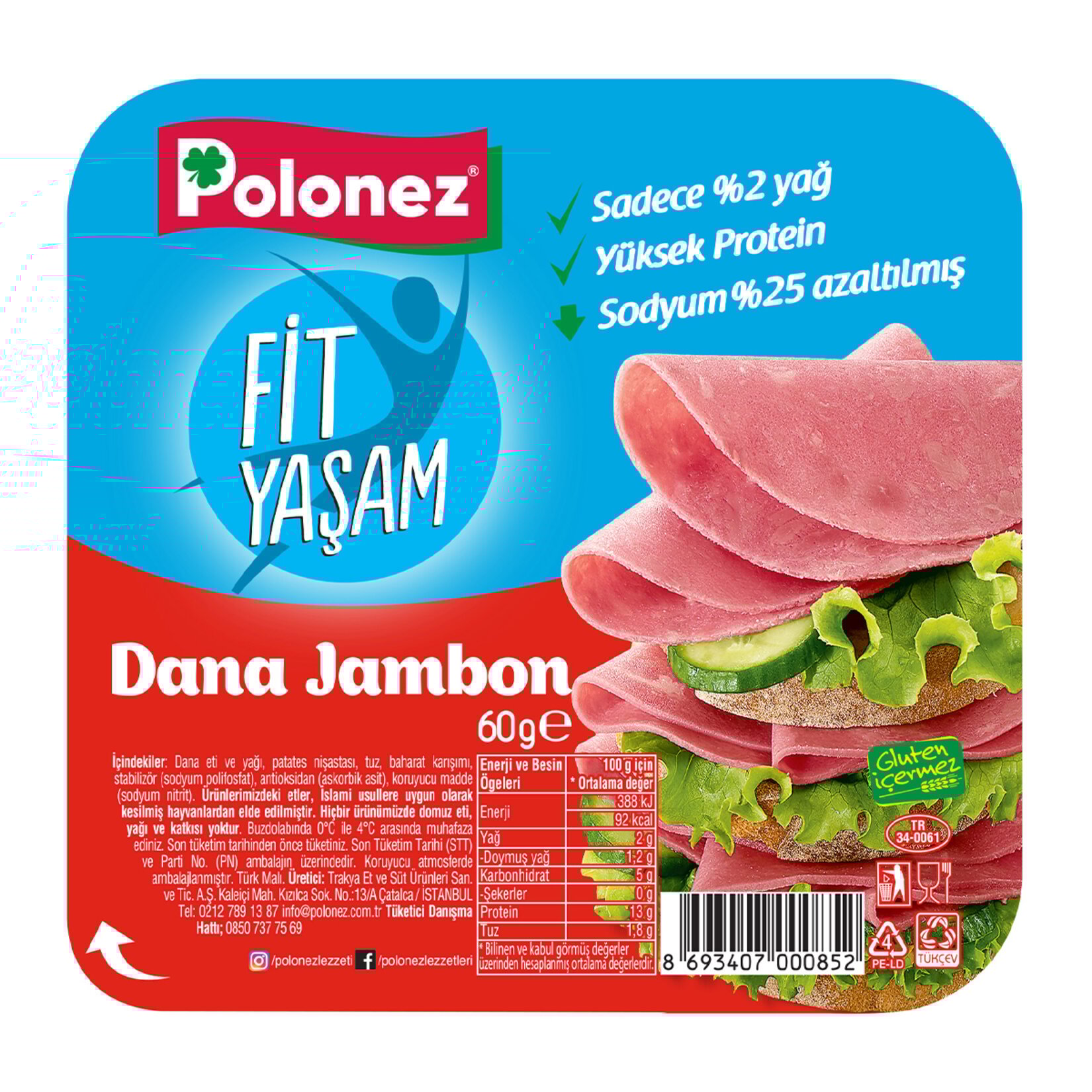 Polonez Fit Yaşam Jambon, beslenmesine dikkat ederken kahvaltı keyfinden vazgeçmek istemeyenler için üretilmiş bir üründür. Migros Sanal Market'in Jambon reyonundan edinebilirsiniz.