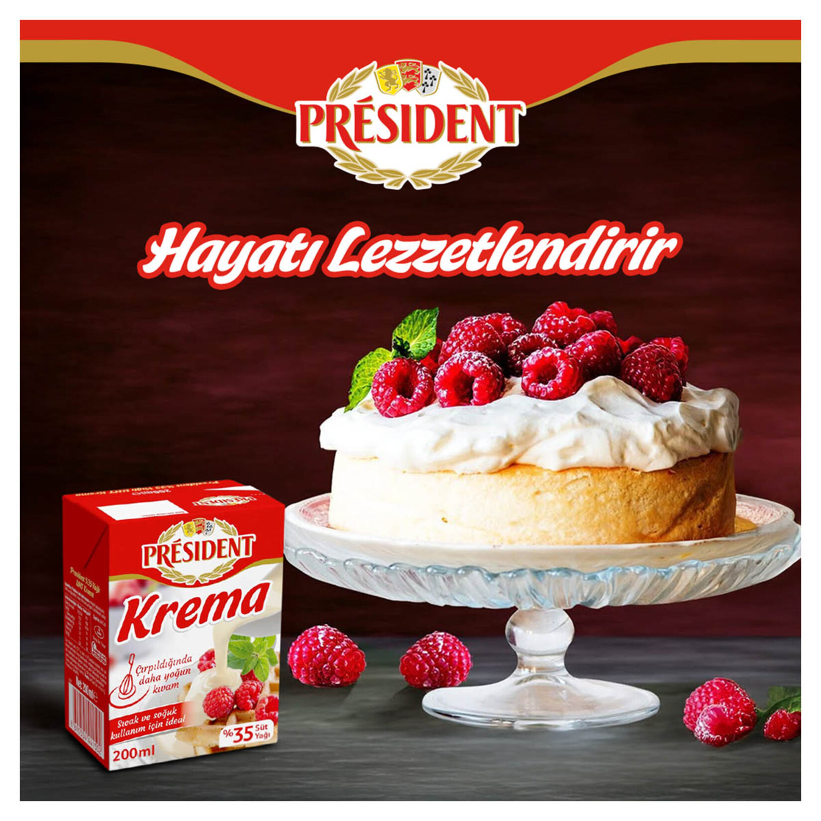 %35 yağlı reçetesi ile hem tatlı, hem de yemeklere lezzet katan President Krema, güçlü kabarma performansı sayesinde özellikle pasta ve tatlı süslemelerinde benzersiz lezzet deneyimi sunuyor.