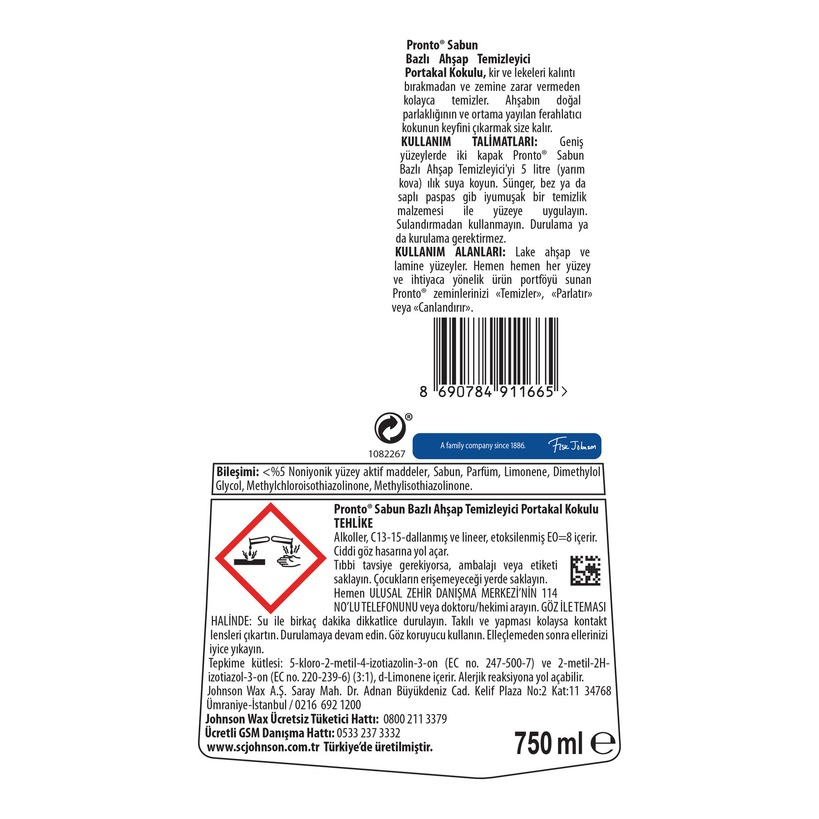 Pronto Ahşap Yüzey Temizleyici, cilalı ahşap zeminleri nazikçe temizleyen yağsız sabun bazlı bir formüle sahiptir.