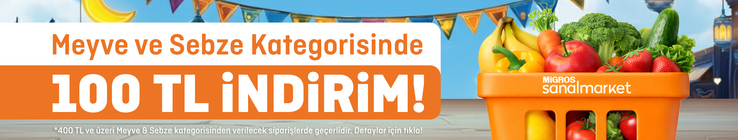 - Kampanya Meyve & Sebze ürünlerinden oluşturulacak 400 TL ve üzeri siparişte 100 TL indirim fırsatı sağlar.