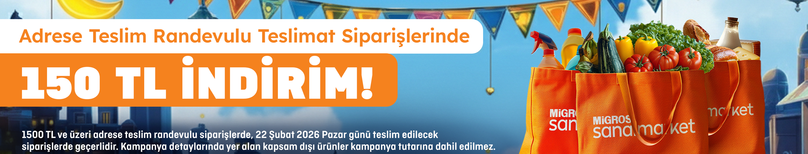 - Kampanya sadece 22 Şubat 2026 tarihinde adrese teslim edilecek randevulu siparişlerde geçerlidir. Hızlı teslimat veya Tıkla Gel Al siparişlerinde geçerli olmayacaktır.