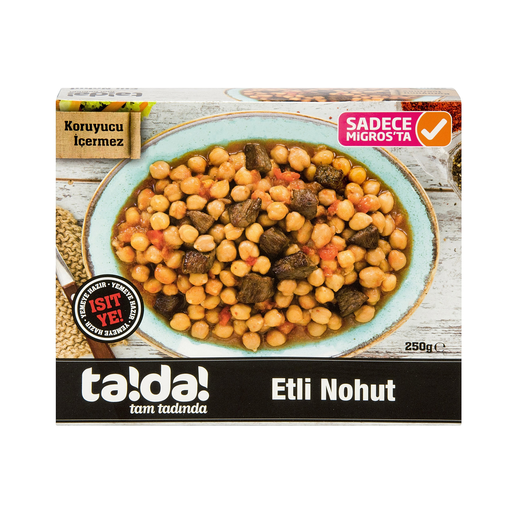Tada Etli Nohut, geleneksel mutfakların sevilen lezzeti, pilavın leziz eşlikçisi nohutu yemeğe hazır halde sizlere sunar.