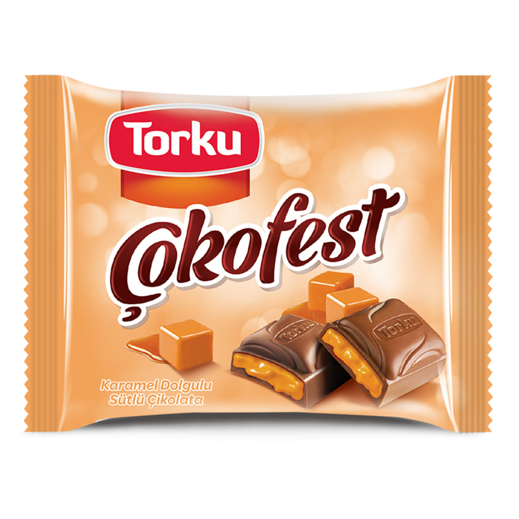 Torku Çokofest Karamel Dolgulu Çikolata, dışı yumuşacık sütlü çikolata kaplı, içi de akışkan karamel dolgulu enfes bir çikolata bardır. %100 doğal, şeker ilavesiz Torku çikolatasını çocuklarınız ve sevdiklerinizle beraber gönül rahatlığıyla tüketebilirsiniz.