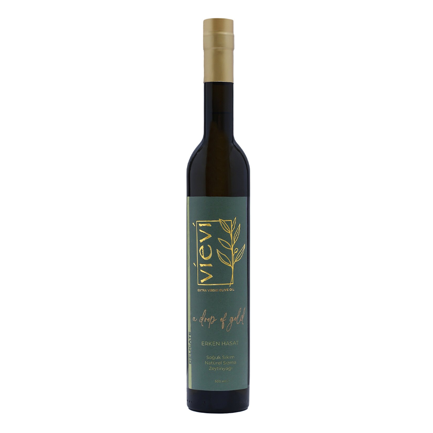 Vievi delicate erken hasat natürel sızma zeytinyağı, aydın Karacasu’daki bahçemizin zeytinlerinden max. 6 saat içinde elle hasat yöntemiyle toprakla temas etmeden toplanan trilye zeytinlerimizden elde edilmiş, soğuk sıkım yöntemiyle üretilmiştir. Mükemmel narın bir tada sahiptir. Trilye, mevsimselliği yoğun, damağı yormayan narın acılık ve yakıcılığı olan bir zeytinyağıdır. Tadında taze çimen, enginar, domates yaprağı, roka ve yeşil taze ot notaları hakımdır. Bu yumuşak ve narın natürel sızma zeytinyağı, balık, salata çeşitleri, pesto sos ve tatlıların tadını çıkarmak için mükemmeldir. % 0,2 asit ve 340+ polifenol değerine sahiptir