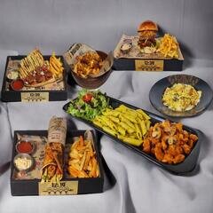 6 adet çıtır tavuk parçaları, 6 adet soğan halkası, 3 adet mozzarella stick, baharatlı patates kızartması, tırtıklıı 5 baharatlı patates kızartması 2 adet Özel sosuyla Servis Edilir.