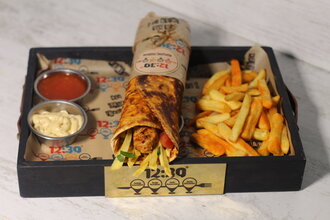 Tandır lavaşına; baharatlı salçalı sos, soğan, maydanoz, küp domates, kibrit patates kızartması, Urfa kebap. 5 baharatlı patates, 2 adet özel sos ile