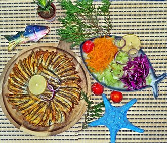Hamsi (2 Kişilik) veya Sardalya (2 Kişilik) + Double Mevsim Salata + Fava Meze + Limon + 2 Adet Jumbo Ekmek + İçecek (1 L.)