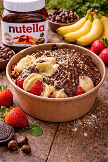 içeriği muz çilek nutella karışık damla kırık fındık çikolata sos