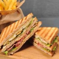 Özel panelenmiş tavuk eti, yeşillik, domates, patates, turşu, ketçaplı özel sos