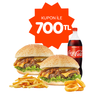 Medium Burger + Medium Burger +Büyük Boy Patates Kızartması + 9’lu Soğan Halkası + 1 Litre Coca Cola+ 4 Adet Sos