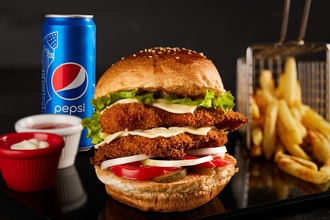 Enjoy Burger ,4'lü soğan halkası ve Pepsi (330 ml) ile