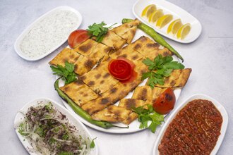 Tırnak pide, lavaş, bulgur pilavı, mevsim salata, kaşarlı fıstık lahmacun. Tırnak pide, bulgur pilavı, çoban salata, közlenmiş biber, çiğ köfte, fındık lahmacun ile