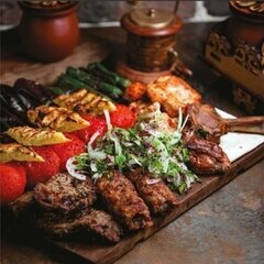 10 Şiş Kuşbaşı, El Yapımı Açık Ayran, Çoban Salatası, Ezme, Sumaklı Soğan, Taze Roka Közlenmiş Yeşil Biber, Közlenmiş Soğan, Közlenmiş Kırmızı Acı Biber(Tedarikte varsa)