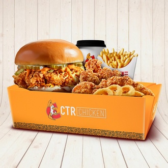 1 Adet Single Tavuk Burger + 1 Adet Kemiksiz (Tenders) + 1 Adet Kanat + 2 Adet Soğan Halkası + 1 Adet Patates Kızartması + 1 Adet Kutu İçecek ve 1'er Adet ketçap_ mayonez ile servis edilir.