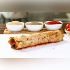 Çift lavaşa; 130 gr. tavuk döner, domates, turşu, patates kızartması,domates sos, mayonez