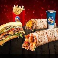Dois tavuk döner dürüm, patates kızartması ve kutu içecek(330ml)
