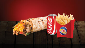 Dois Cheddar Et Döner Dürüm + Patates Kızartması + Kutu İçecek (33 cl.)
