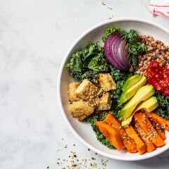 Akdeniz, maskolin yeşillikleri, karabuğday, nohut, mercimek, börülce, dereotu, havuç, tulum peyniri, kuru üzüm, kuru kayısı, salatalık, cherry domates, özel sumak ekşili sos