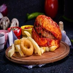 Tercih edeceğiniz burger, patates kızartması ve içecek ile