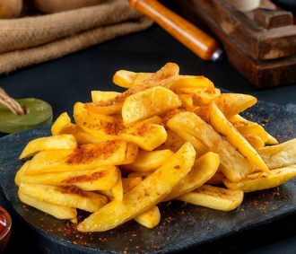 Patates kızartması, kaşar peyniri, ketçap, mayonez