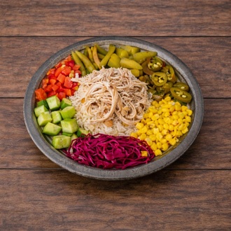Pirinç Pilavı (300 gr.) + Tiftiklenmiş Tavuk (100 gr.) + Mevsim Salata + Turşu ve Turşu Biber